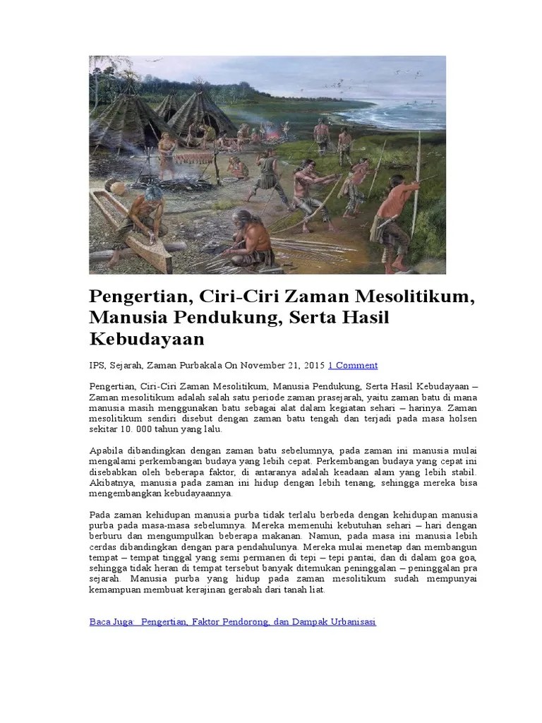 Gambar Kebudayaan Pada Zaman Mesolitikum : Zaman Mesolitikum Akhir Kehidupan Sosial Kepercayaan Dan Peralatan Halaman All Kompas Com. 2000 sm (mesolitikum) hingga ke 500 sm (zaman perunggu). Pada masa ini diperkirakan satu zaman dengan masa perunggu. Kemudian berdatangan juga bangsa austronesia yang telah mempunyai kebudayaan tempat tinggal dan bercocok tanam (neolitikum).